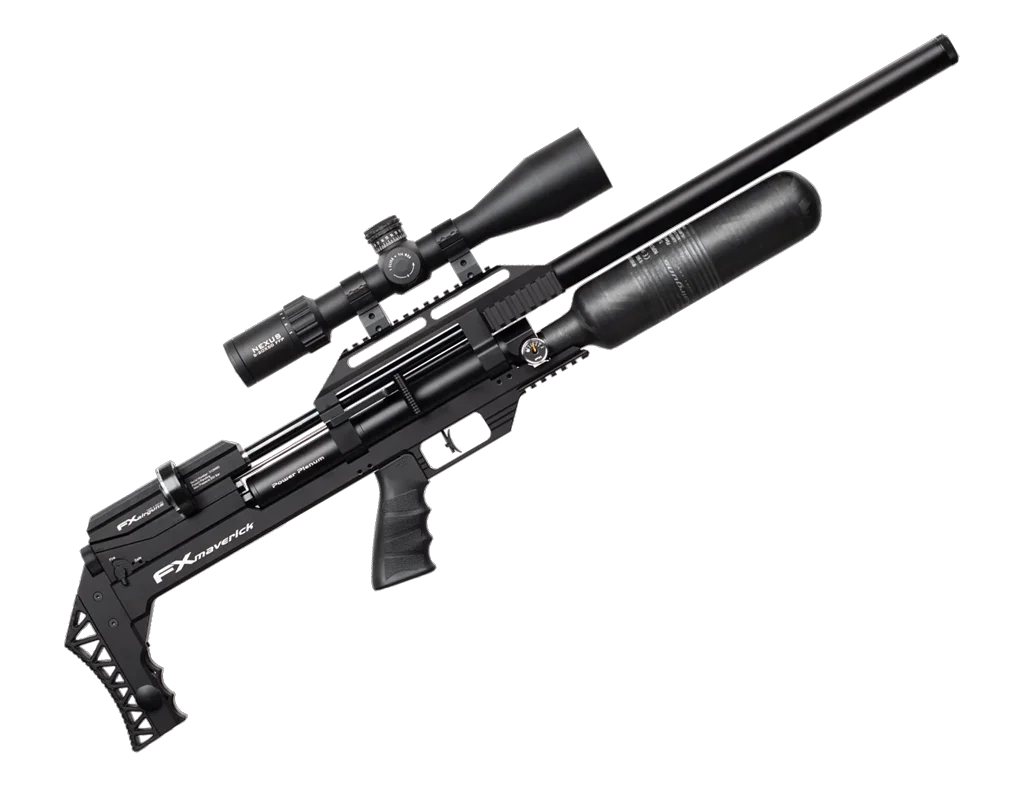 「FX マーベリック」は、スラッグ弾やグレイン数の大きいペレットの使用を想定して作られたモデルです。FX社史上最大級のパワープレナムを搭載。